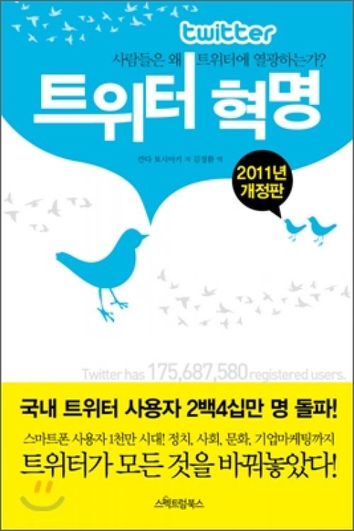 2011년 1월 19일, 트위터 한국어 서비스 실시 예정된 트위터. 한국에서 트위터를 사용하는 사람은 200만명을 넘어 300만명에 달하고 있다. 스마트폰의 빠른 보급과 더불어 급증하는 사용자 한국 사용자를 위해 트위터 공동창업자인 에반 윌리암스가 한국을 방문하여 트위터 한국어 서비스에 대한 구체적인 방안을 발표할 예정이다. 그만큼 빠르게 변화가 이루어지고 있는 트위터 환경에 발맞추어 2011년 개정판을 발간했다. 새로운 기능 설명, 바뀐 수치 등을 담아 보다 생생한 정보를 소개한다.